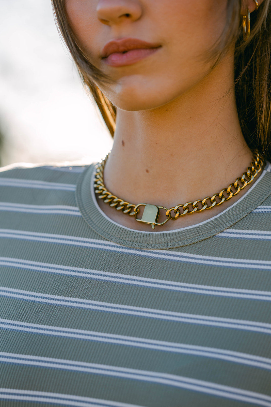 The Hedy Chain will definitely become a staple in your wardrobe. Wear it with the clasp in the back for a classic look, or the extra large clasp in the front for a fashion forward moment! Named after the daring Hedy Lamarr, actress by day, inventor by night, this necklace embodies her duality and strength.