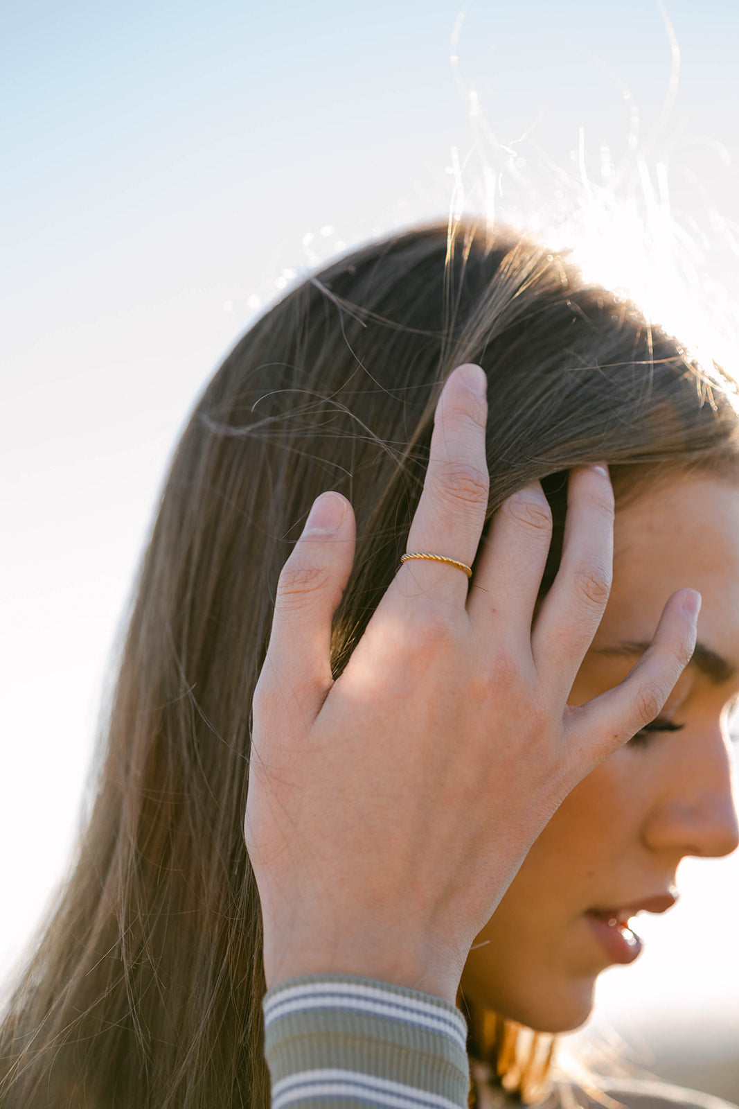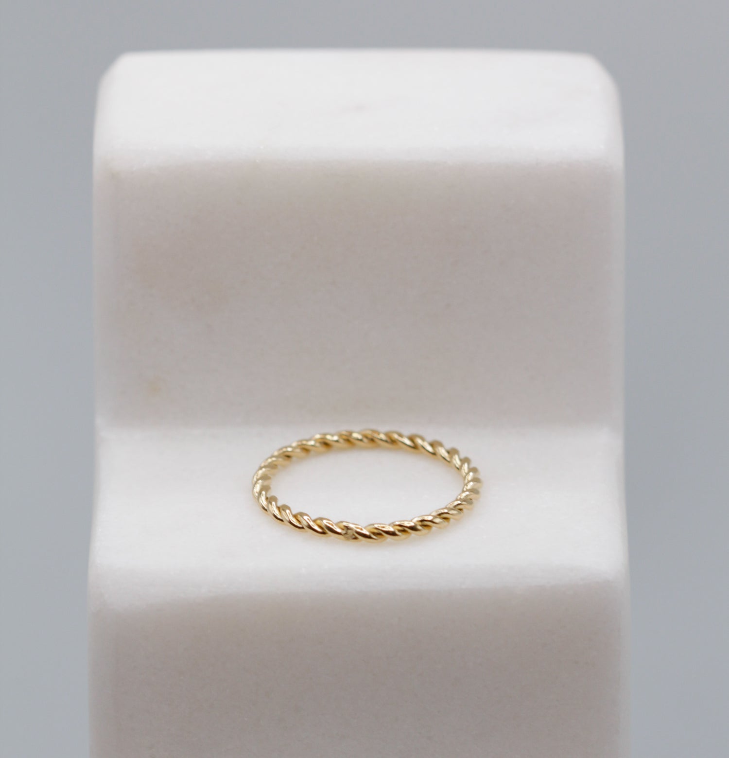 The Raquel Rope Ring is easy to wear with any stack on any finger. It can be worn everyday and the rope texture is quickly becoming our favorite in rotation.