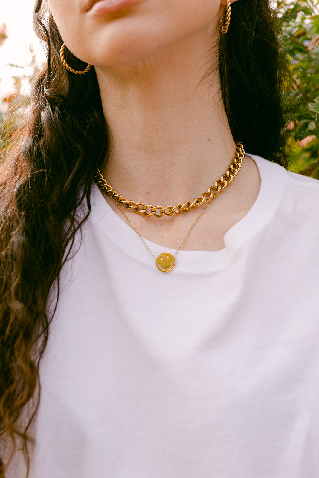 The Lucille Necklace is a playful yet chic style that pairs beautifully with our Marilyn Herringbone and Grace Chain. Wear this on a rainy day and you will certainly bring the sunshine! Named after the queen of comedy, Lucille Ball, to bring you lighthearted energy throughout the day.