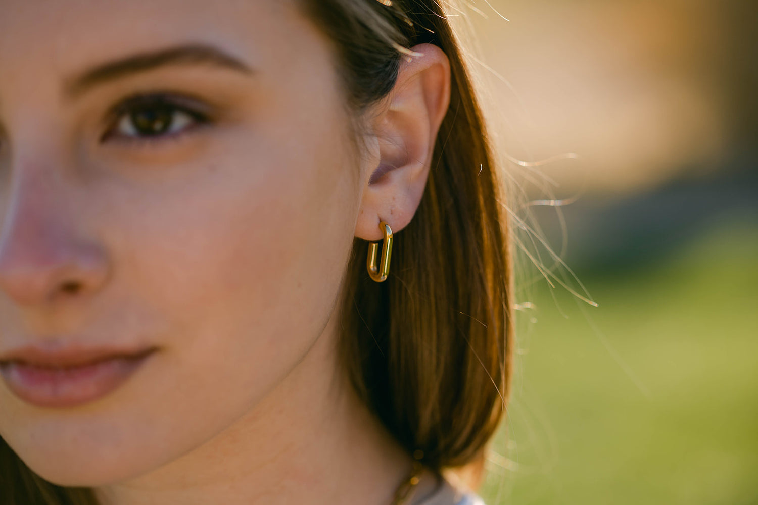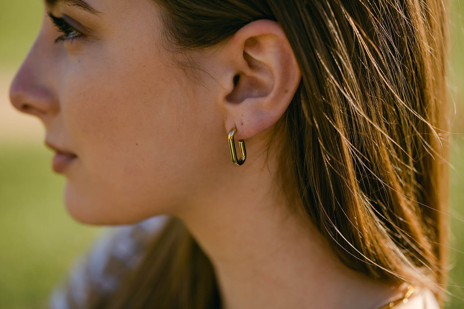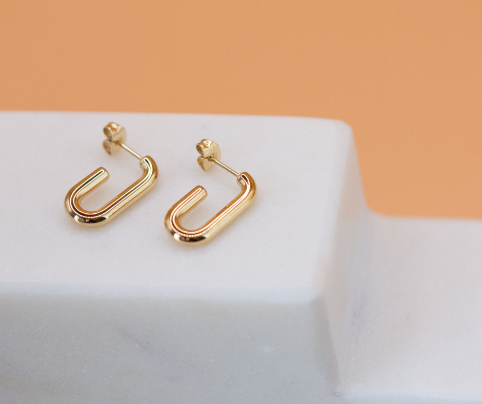 The Sigourney Square Hoop is the perfect everyday hoop. Wear it alone or in the second hole for a fun stacked hoop look.