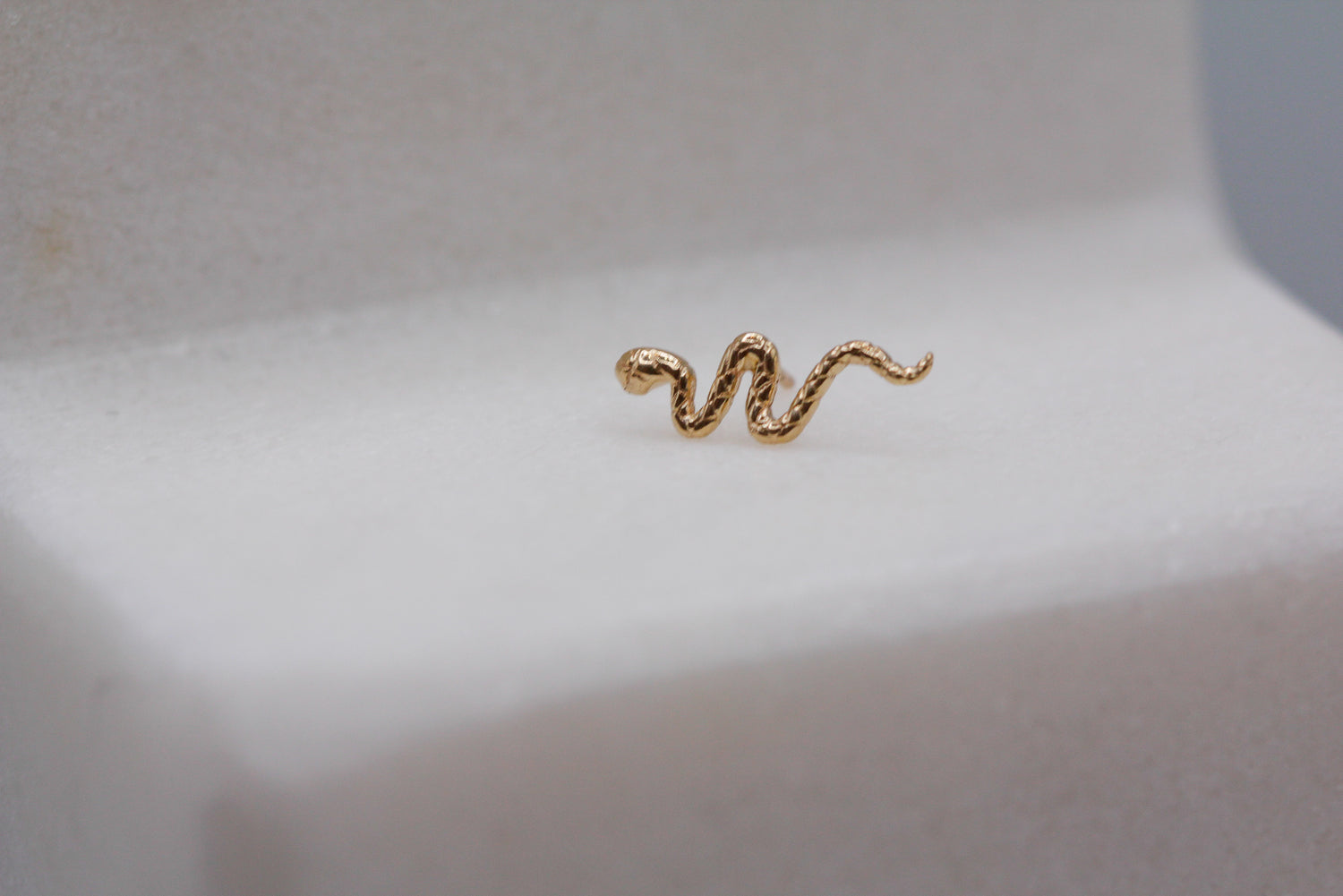 Seduction is the role, and Hannah plays it oh so well. Shapely and elegant, she promotes a movement and femininity in her 14K gold scales, which are etched into her liquid like body.