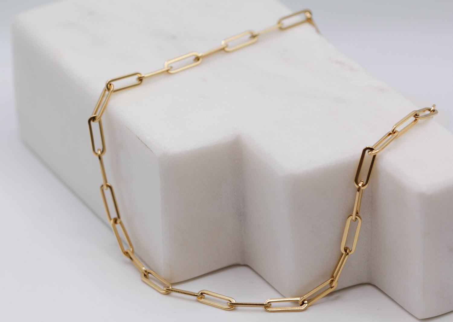 The Grace Elongated Chain is the most versatile necklace and the perfect layer to pair with our thin Herringbone or Smiley Necklace. This effortless design can also be worn on its own to dress up a t-shirt or your favorite little black dress. Named after the Princess of Monaco herself, this chain is the embodiment of strength and power with refined elegance and beauty.