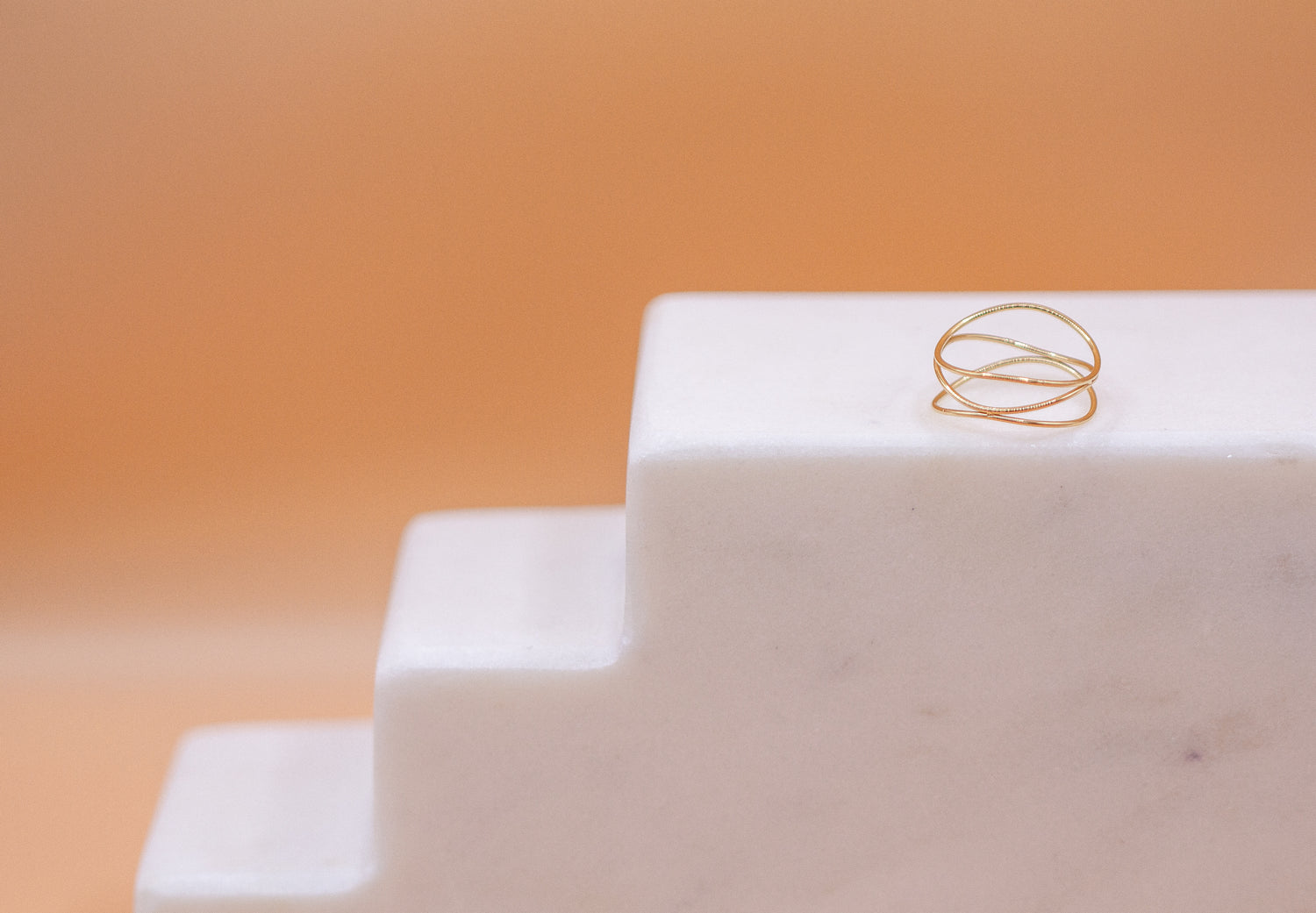 Inspired by Wonder Woman's Lasso of Truth! The Gal Ring has three delicate strands of gold that make a statement while remaining effortless and dainty. It is the perfect starter ring to create your stack.