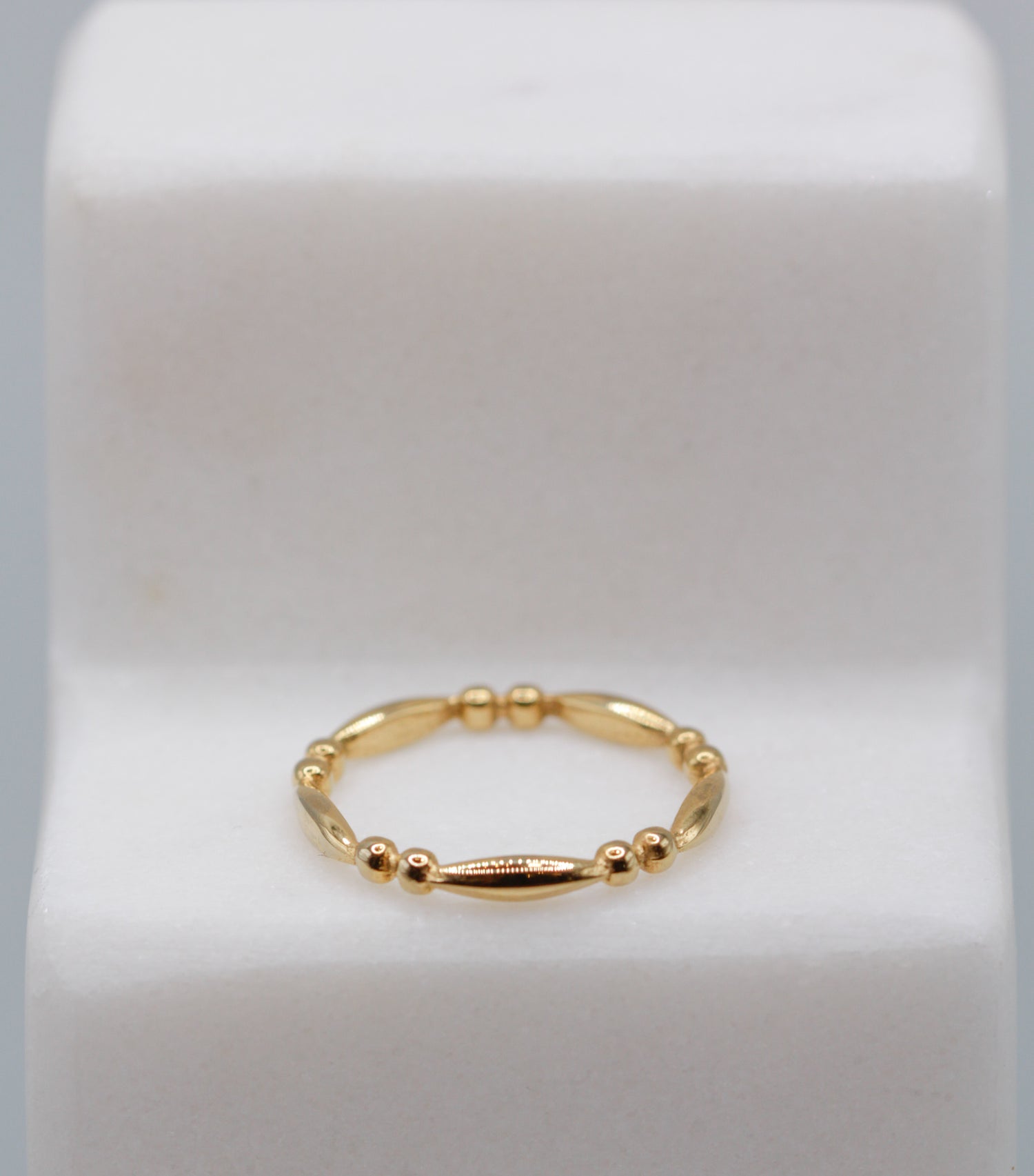 The Eartha Ring is a triple threat ring. It plays well with others when you want to stack it, but it is also fine standing alone on stage for simple elegance and a charming look.